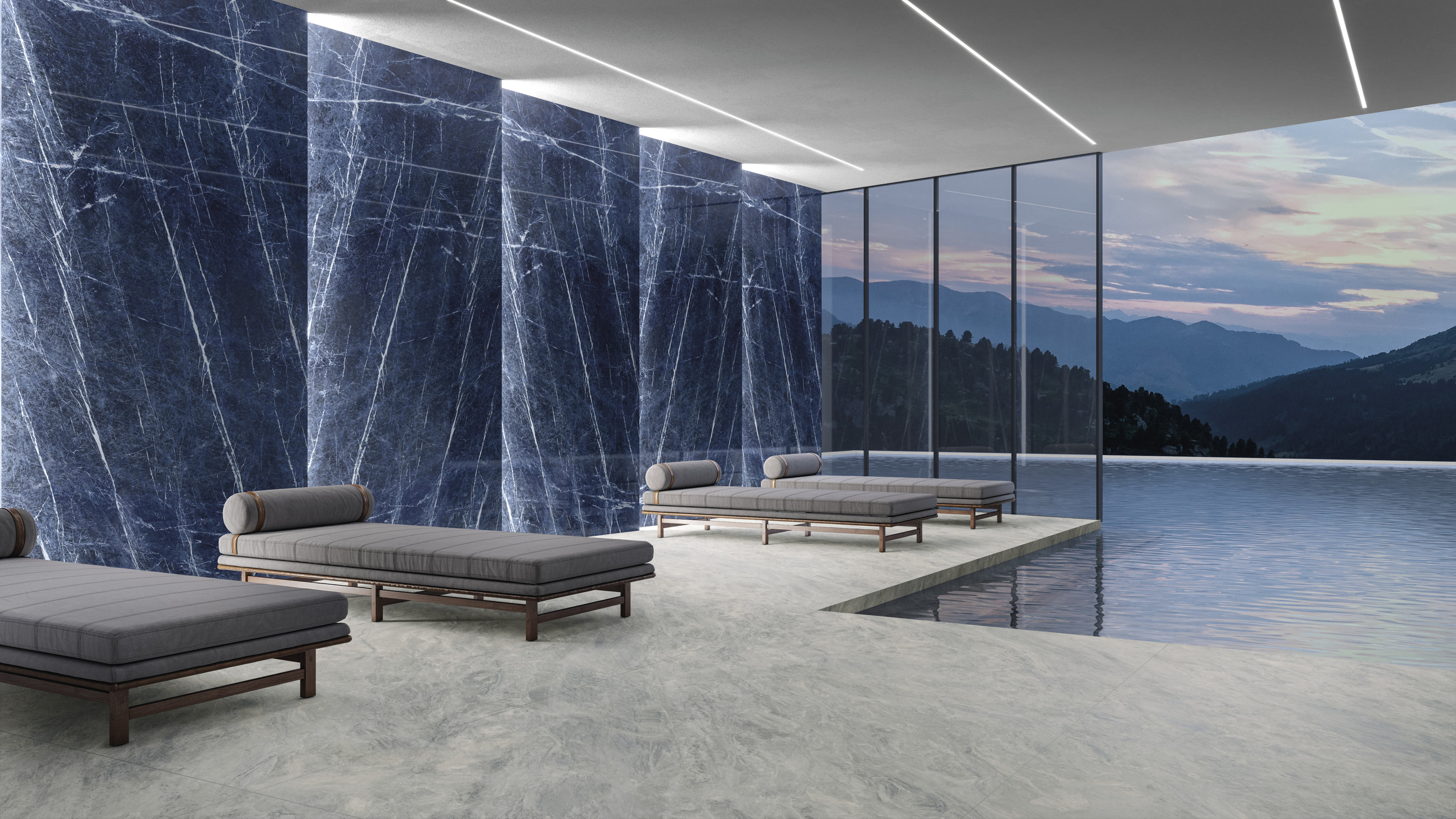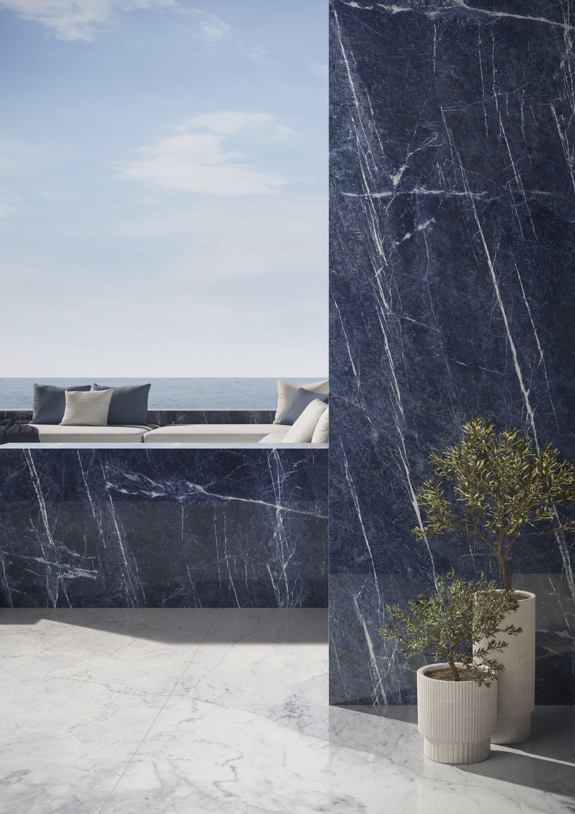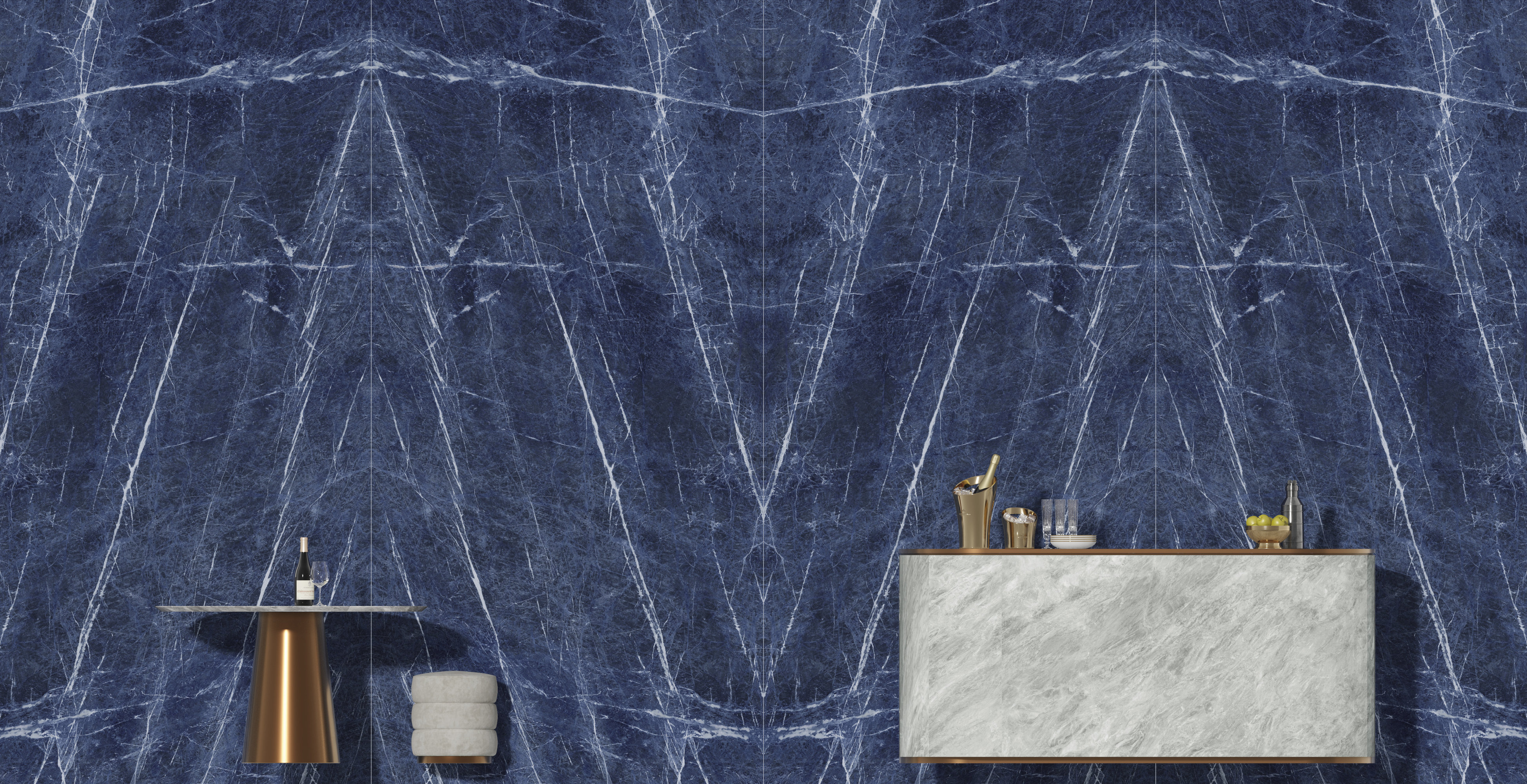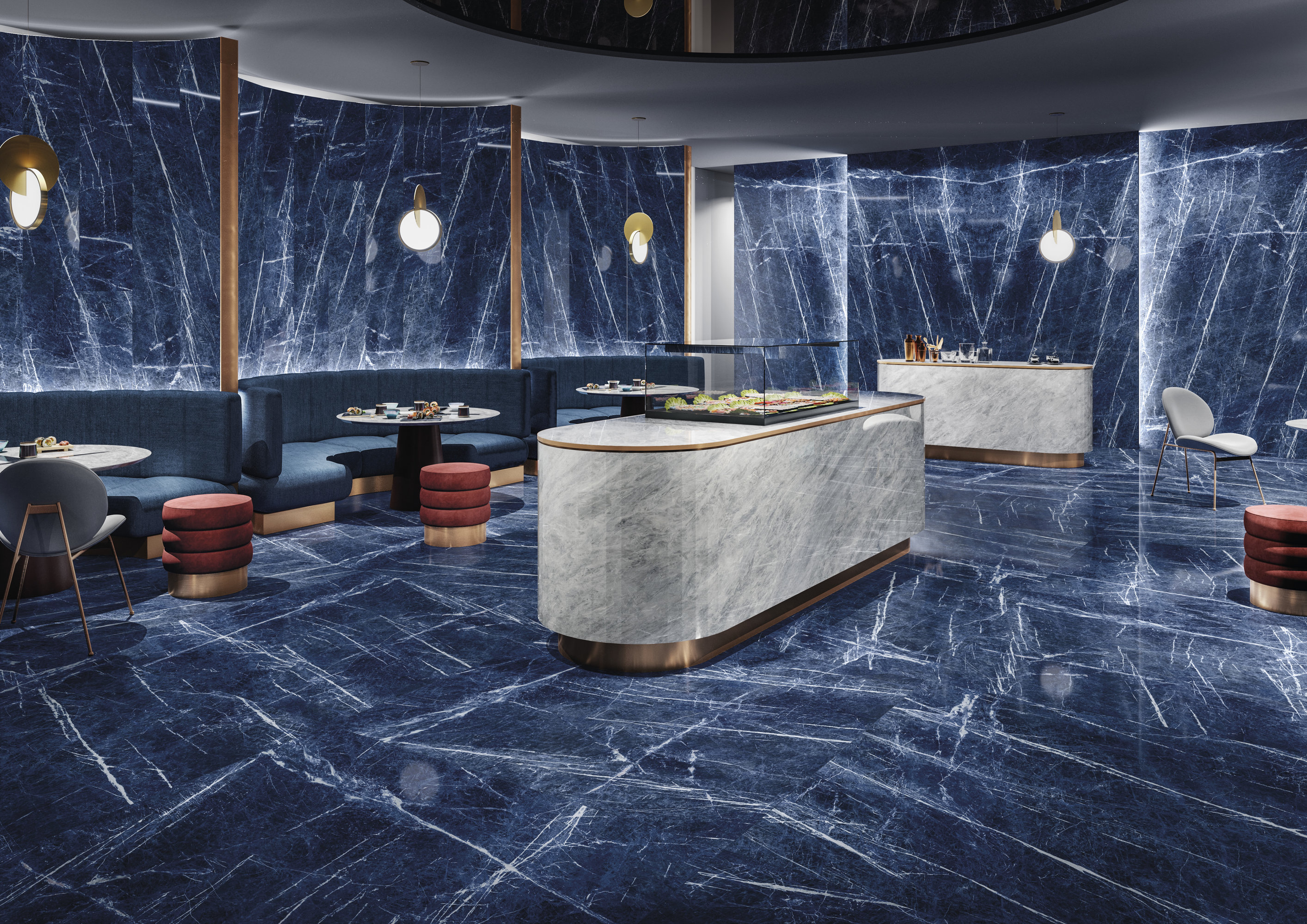 La ligne Brazilian Blue en lastre ceramiche incarne l'esthétique, l'innovation et le design. Les billes MaxFine. La grandeur de la matière, l'art de la légèreté. Une rencontre extraordinaire entre la majesté naturelle du marbre et l'innovation technologiq